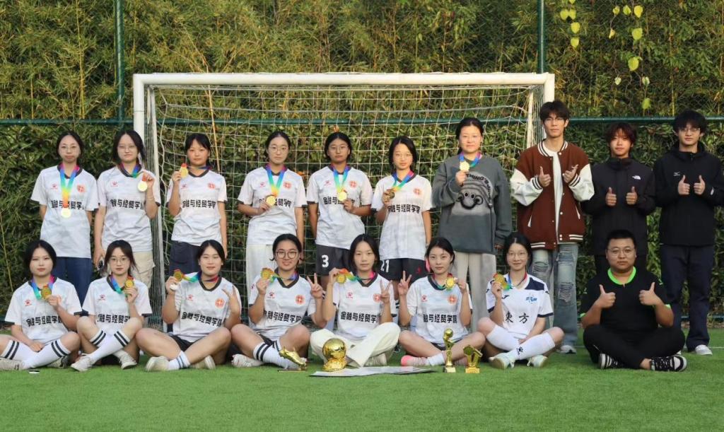 铿锵玫瑰,荣耀绽放;金融女足,未来可期。此次夺冠不仅为学院增添了光彩,更展现了金融与经贸学院学子顽强拼搏、奋勇争先的精神风貌。相信在未来的日子里,金融与经贸学院女足代表队将以此为契机,再接再厉、再创佳绩,同时也将带动更多学子投身体育锻炼,在运动中收获成长与快乐,续写学院体育事业发展的崭新篇章!
