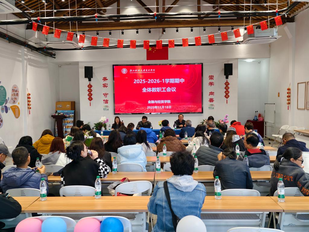 11 月 18 日,金融与经贸学院 2025 - 2026 - 1 学期期中全体教职工会议与分工会活动在“美羊羊基地”融合举行,由李乐副院长主持,全体教职工共商学院发展。