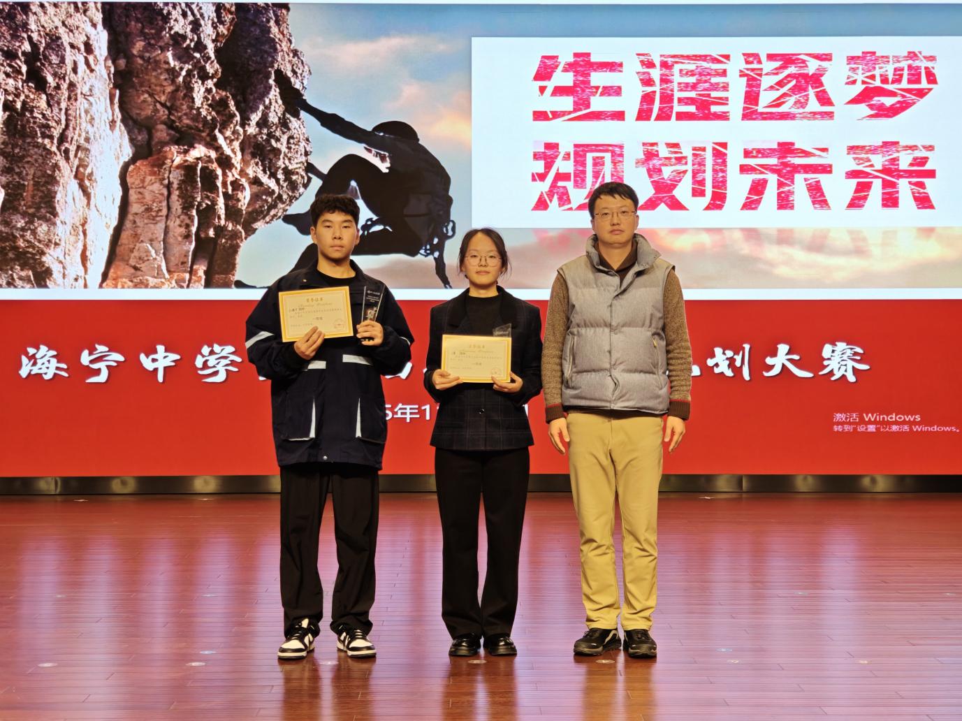 决赛舞台上,经近一个月指导的参赛学生褪去青涩,以饱满激情阐述规划,答辩思路清晰、表达流畅,尽显职业规划能力与发展思考。现场同步举行 “英才同行” 项目教练聘任仪式,海宁中学副校长马炎炎老师为大学生代表颁证,标志着两校跨学段育人联动的深化。