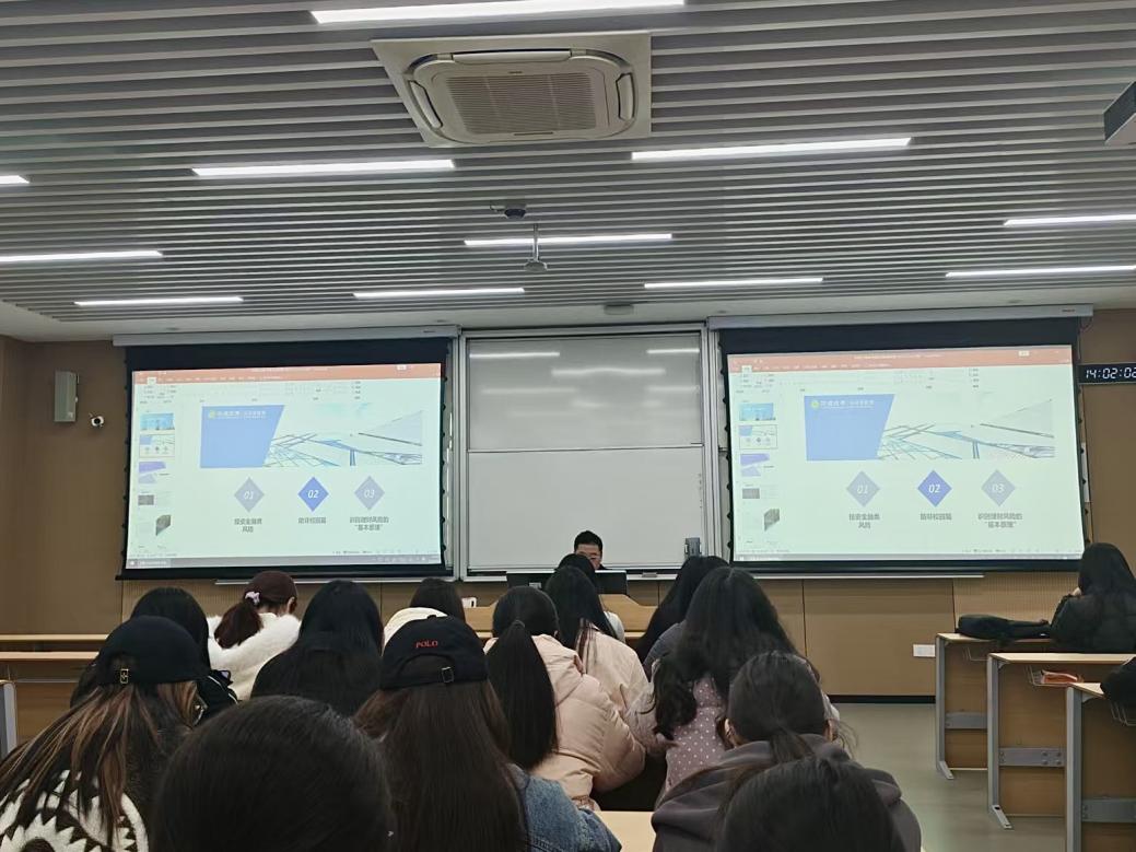 2025年12月2日下午,金融与经贸学院在J3-209教室成功举办《金融防非反诈讲座》。本次讲座特邀财通证券德清营业部业务总经理助理吴一晨担任主讲人,面向东方学院全体学生开展,旨在提升大学生金融风险防范意识,筑牢校园反诈安全网。