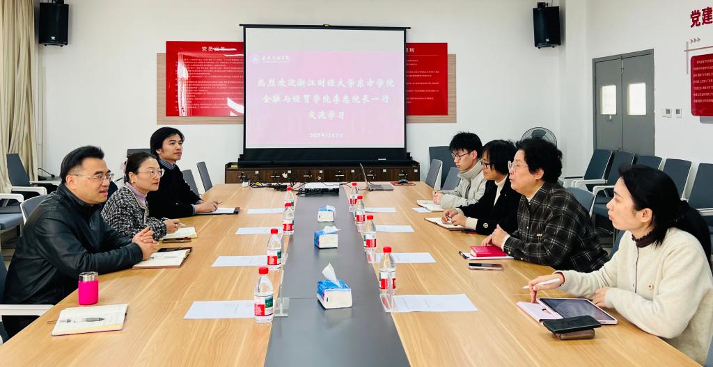 2025年12月3日,金融与经贸学院院长李忠携副院长李乐、金融学系系主任朱基煜、综合秘书王文朋一行,前往嘉兴南湖学院现代金融学院开展“十五五”发展规划编制工作调研,受到嘉兴南湖学院现代金融学院院长王晓辉、副院长谭华热情接待。