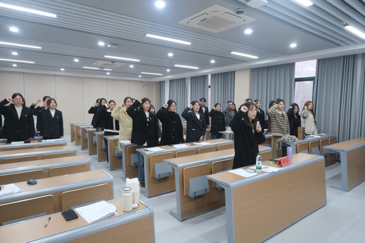 高欣暄等32名发展对象依次上台宣读《入党志愿书》,从思想政治、学习成绩、工作贡献、群众基础、作风纪律等方面,详细汇报了自成为入党积极分子以来的成长历程、收获感悟及存在不足,深刻表达了对加入中国共产党的坚定渴望和为党和人民事业奉献青春的决心。