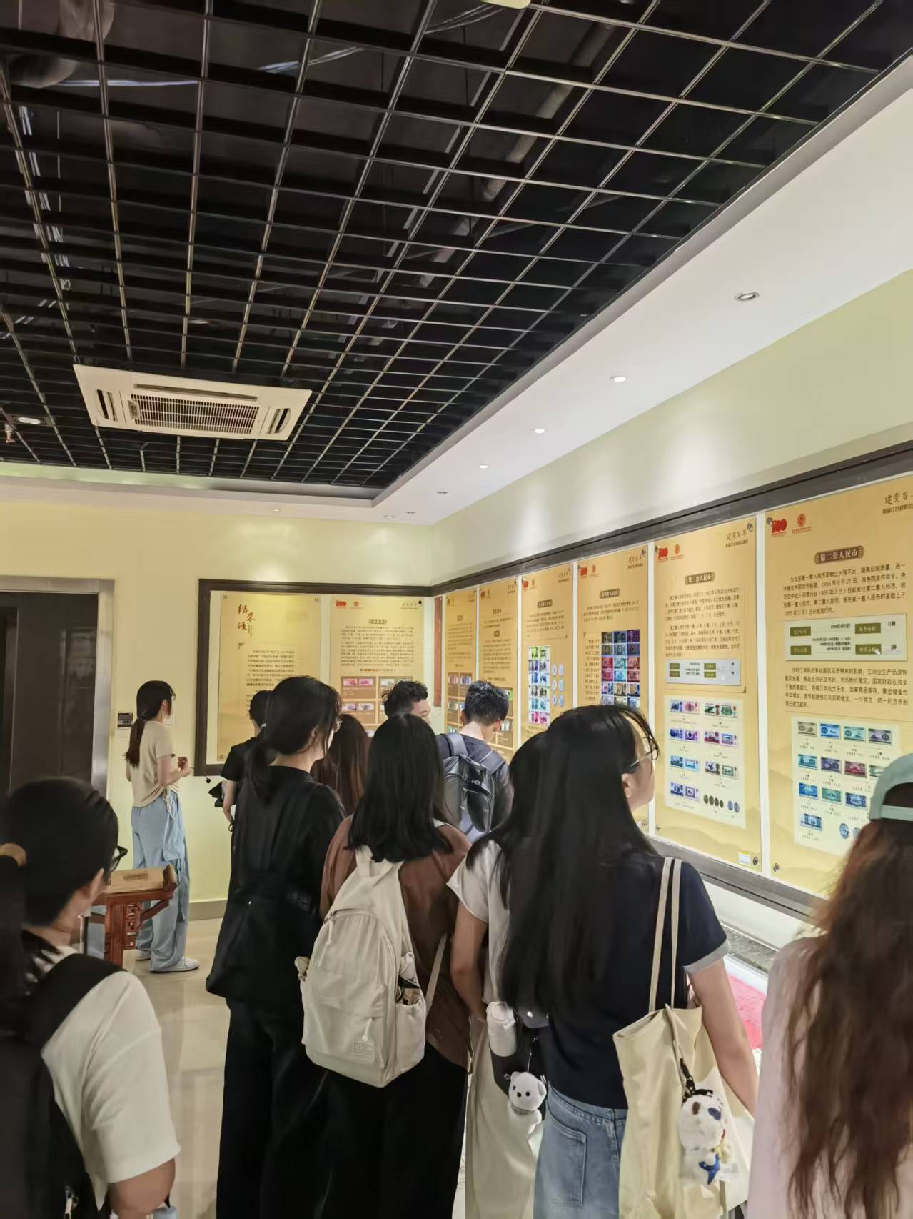 在参观过程中,学生们对陈列馆中珍贵的红色货币展区表现出极高的关注度。该展区系统展示了从土地革命时期、抗日战争到解放战争等各个历史阶段,由中国共产党领导下的根据地政府、银行发行的各种货币、债券和股票。从苏区的银元券、边区的布币,到各解放区发行的纸币,这些展品生动再现了那段艰苦卓绝却又充满金融智慧的岁月。