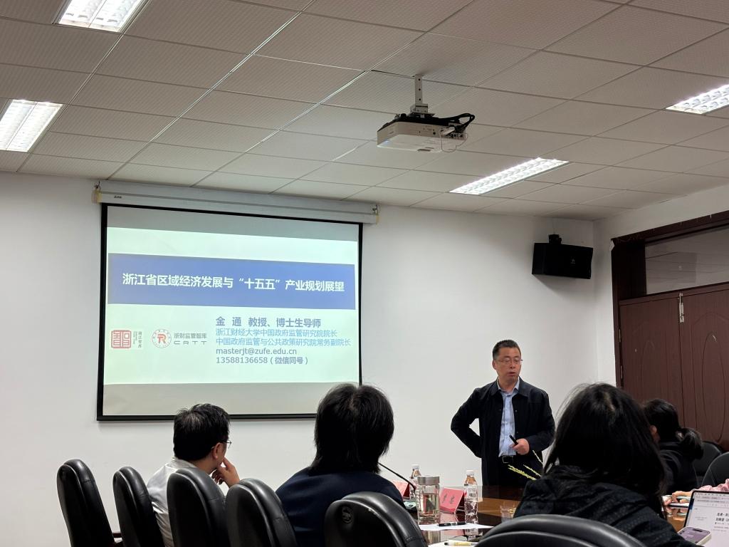 为紧跟时代步伐,深化学科内涵建设,2025年10月21日,浙江财经大学东方学院金融与经贸学院成功举办了一场以“浙江省区域经济发展与‘十五五’产业规划展望”为主题的应用型学科建设学术讲座。本次讲座特邀浙江财经大学中国政府监管研究院院长、博士生导师金通教授担任主讲,为学院师生带来了一场高水平的学术盛宴,学院院长李忠主持,学院师生30余人参加。