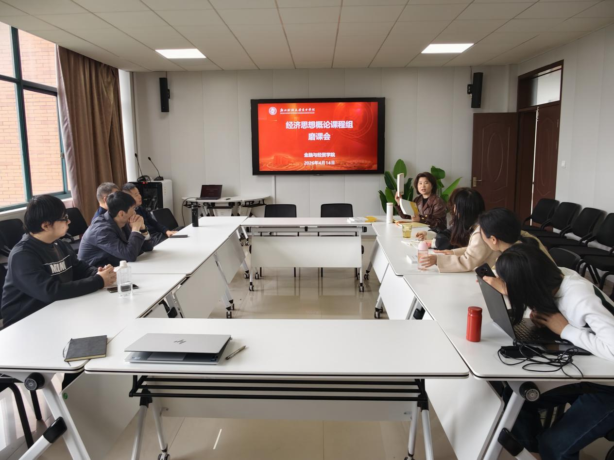 4月14日14:00,《习近平经济思想概论》课程组在J1-504召开磨课会,学院副院长李乐、课程组负责人毛小敏及全体课程组成员参加会议。会议围绕《习近平经济思想概论》课程教材使用、教学组织、考核方式、案例建设等内容进行了交流研讨,并对下一步课程建设工作作了初步安排。