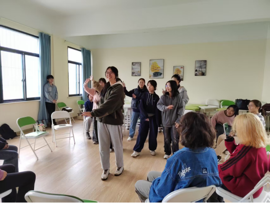 活动在轻松愉快的氛围中拉开帷幕。通过“无家可归”和“大风吹、小风吹”破冰游戏,同学们迅速消除了彼此的陌生感。在“相亲相爱一家人”环节,通过随机分组形成了四个充满活力的小组,各小组通过“滚雪球”式自我介绍增进了相互了解,并创建了各具特色的“社团”。