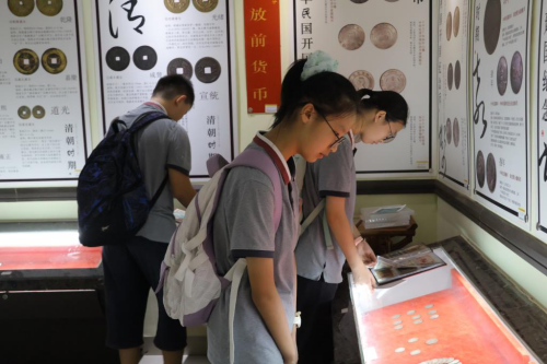 2025年9月20日上午,海宁市聆涛中学的优秀学生代表,走进了浙江财经大学东方学院金融与经贸学院的货币陈列馆。在与各类货币展品的“近距离接触”中,同学们不仅深化了对中国金融发展历程的认知,更在潜移默化中增进了对国家历史文化的理解与热爱。
