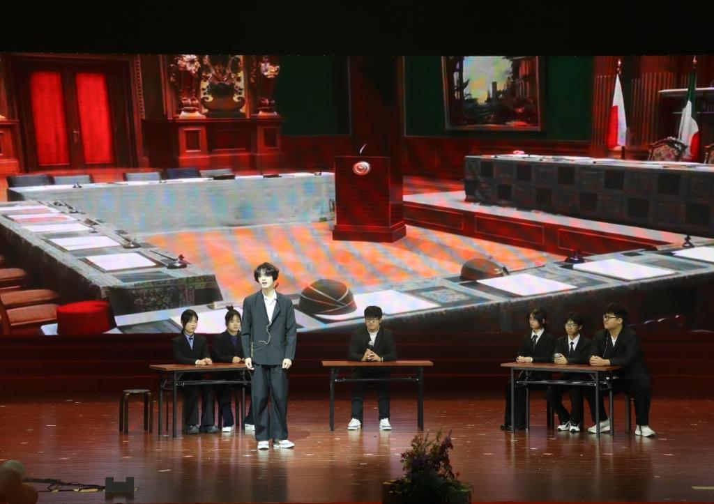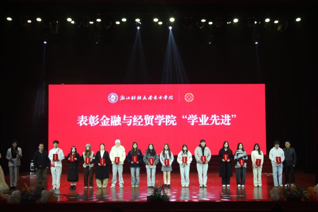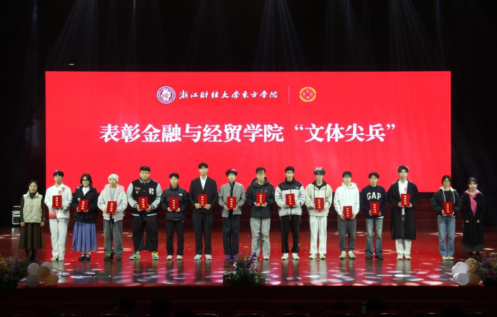 浙江财经大学东方学院金融与经贸学院于2025年12月12日晚18:00于影剧院隆重举行以“鎏金嘉韵 融焕新章”为主题的2025迎新晚会暨第八届“菁华”青春振中华微音乐剧获奖作品展演隆重举行,晚会分为启跑、驰征、冲线三大篇章,用多元艺术形式为新生献上视听盛宴。