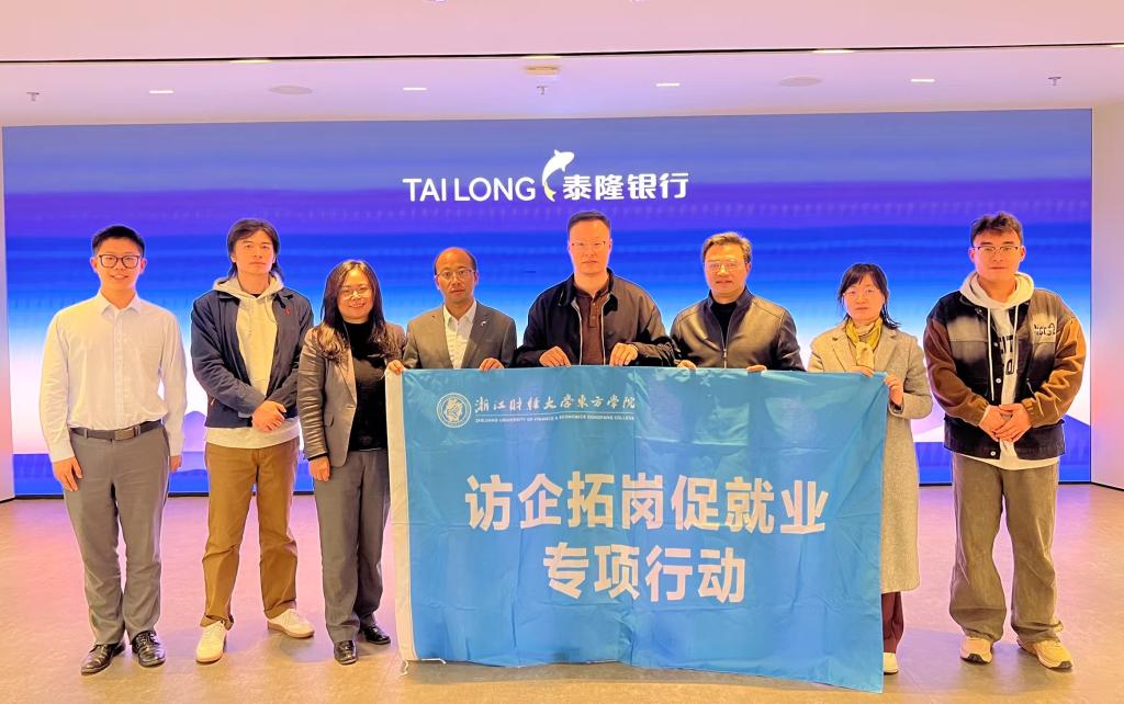 2026年,3月12日,学院党委副书记汪风易带队校企合作调研并访企拓岗,受到浙江泰隆商业银行股份有限公司董事会办公室战略发展研究中心主任钱国忠、杭州分行人力资源总监张微热情接待。