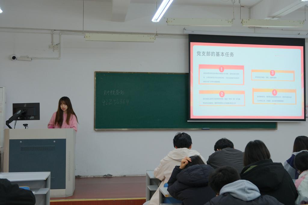 第一讲由孙琪老师主讲,聚焦《中国共产党支部工作条例(试行)》展开系统阐释。孙老师围绕《条例》核心要义与实践要求,深入讲解党支部基本任务、工作机制及组织生活规范,着重强调党支部是党的基础组织、基层战斗堡垒的重要作用。她指出,深入学习《条例》是入党申请人的必修课,有助于精准把握基层党务工作逻辑,为后续参与支部建设筑牢根基。