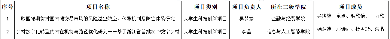 近日,经创业学院推荐、浙江财经大学本部评审,金融与经贸学院余雯哲老师指导的学生项目喜获2026年浙江省大学生科技创新活动计划暨新苗人才计划拟推荐省级立项。