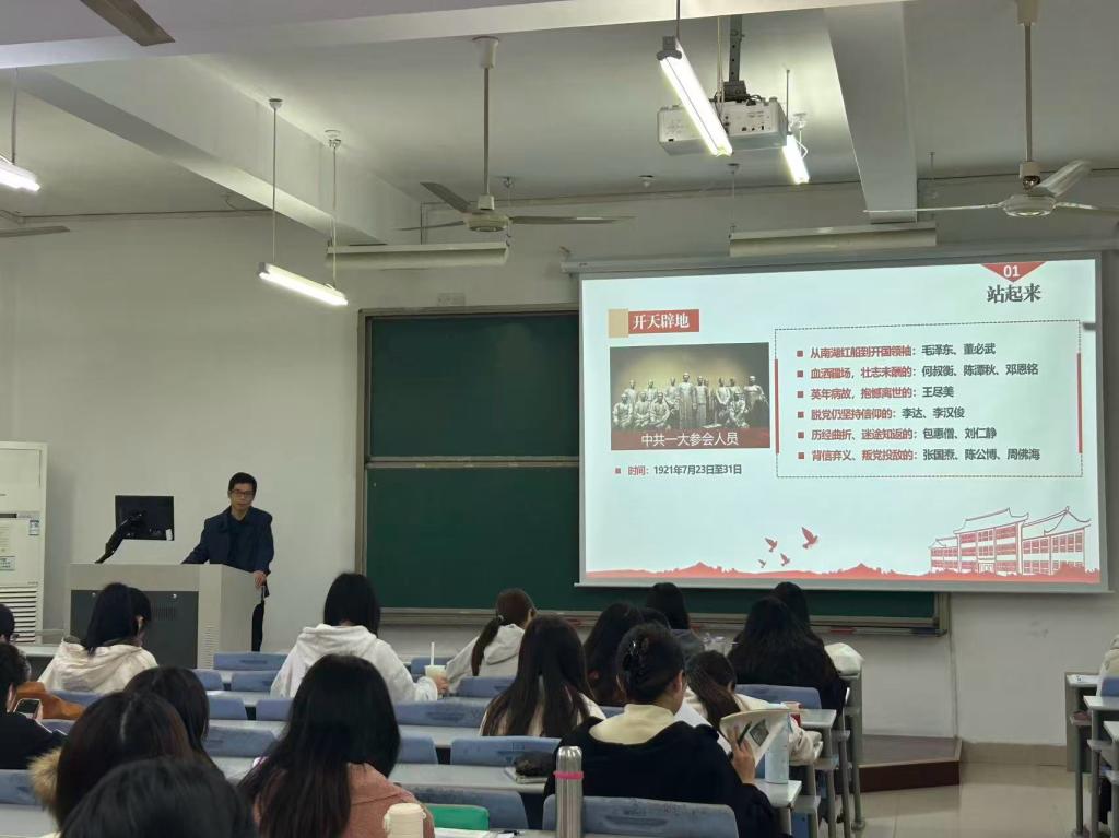 3月31日,信息与人工智能学院党总支书记费松天于4J314讲授《百年历程与成就》主题党课。费松天老师以党史发展脉络为主线,系统梳理党的百年奋斗历程,依次讲解新民主主义革命时期、社会主义革命和建设时期、改革开放新时期以及中国特色社会主义新时代的发展成就,清晰阐释中华民族从“站起来”“富起来”到“强起来”的历史性跨越。同时,他寄语全体学员要树立正确历史观,坚持学史明理、学史增信、学史崇德、学史力行,在回望党史中坚定理想信念,传承红色基因,汲取奋进力量。