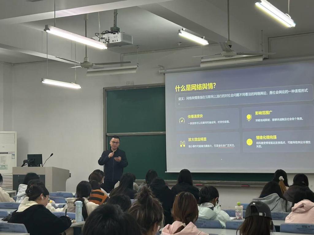4月7日,院团委书记宣刚于4J314讲授《大学生党员如何应对网络舆情与网络安全》主题党课。结合当下复杂多变的网络舆论环境,宣刚老师围绕网络舆情辨别、网络安全防范、媒介素养提升和青年责任担当展开授课,结合常见网络风险案例,剖析不良网络信息带来的隐患与危害。课程明确青年学生党员的网络行为准则与纪律底线,引导学员自觉严守网络纪律、规范网络言行,不断提升风险识别与防范能力,主动弘扬网络主旋律、传播社会正能量,展现新时代青年党员的良好精神风貌。