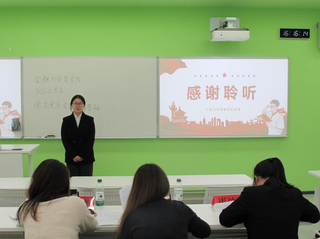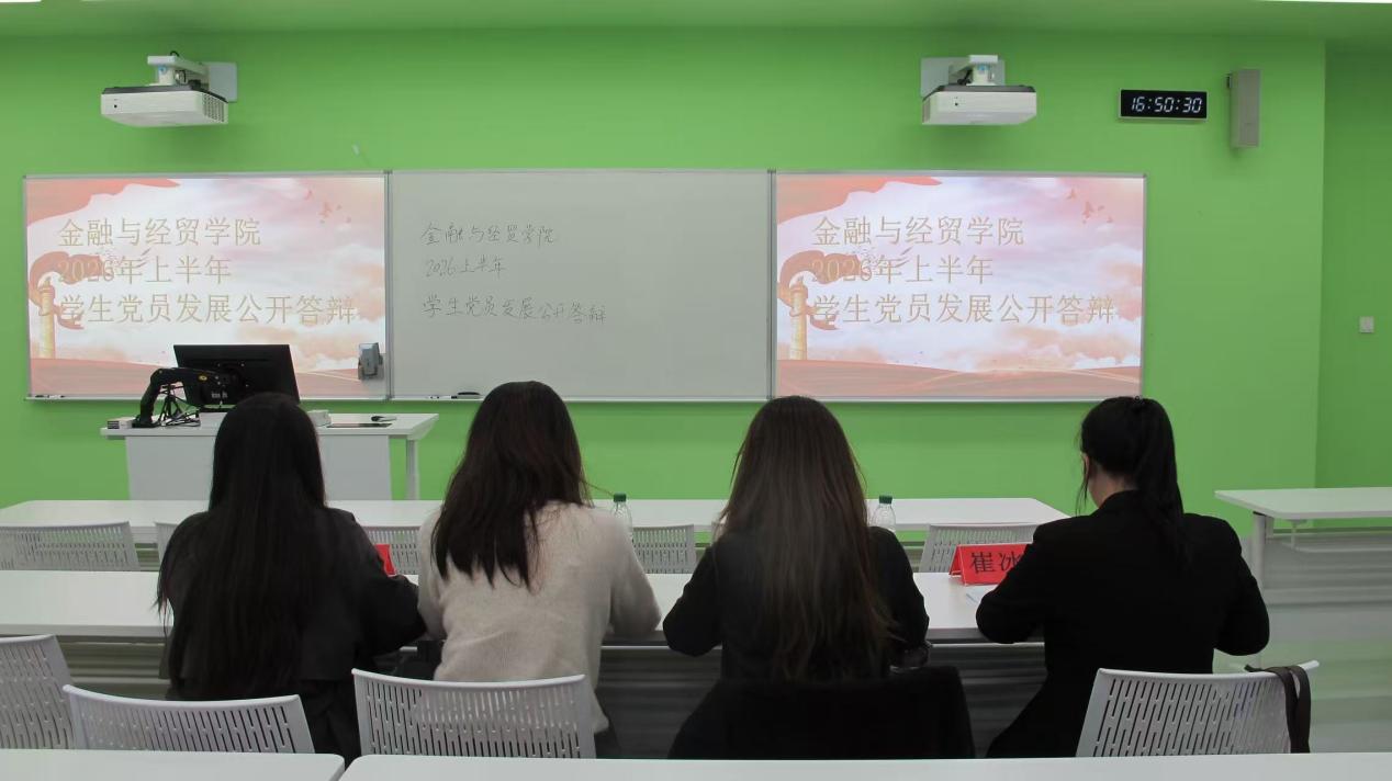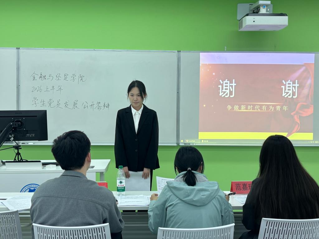 此次学生党员发展公开答辩会,是金融与经贸学院规范党员发展程序、提升党员发展质量的重要实践举措。今后,学院党总支将持续细化党员发展全流程管理,着力打造一支政治过硬、素质优良、作风扎实的党员队伍;同时,进一步加强对入党积极分子的思想引领和实践锻炼,引导他们在学思践悟中坚定理想信念,在担当奉献中践行初心使命,源源不断地为党的事业发展注入新鲜活力。