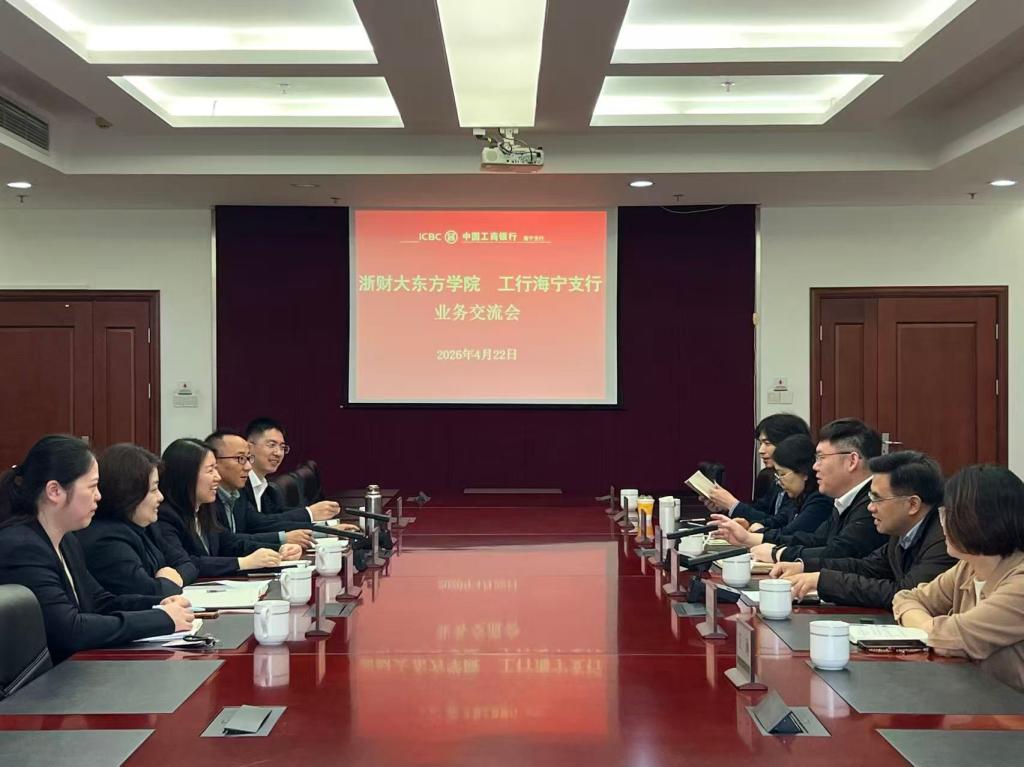 4月22日,学院副院长张书铭带队金融与经贸学院、财税学院负责人与相关老师分别赴中国工商银行海宁支行、海宁农商银行参访调研,中国工商银行海宁支行行长宋媛、海宁农商行董事长徐峻携支行主要负责人热情接待了调研组一行。